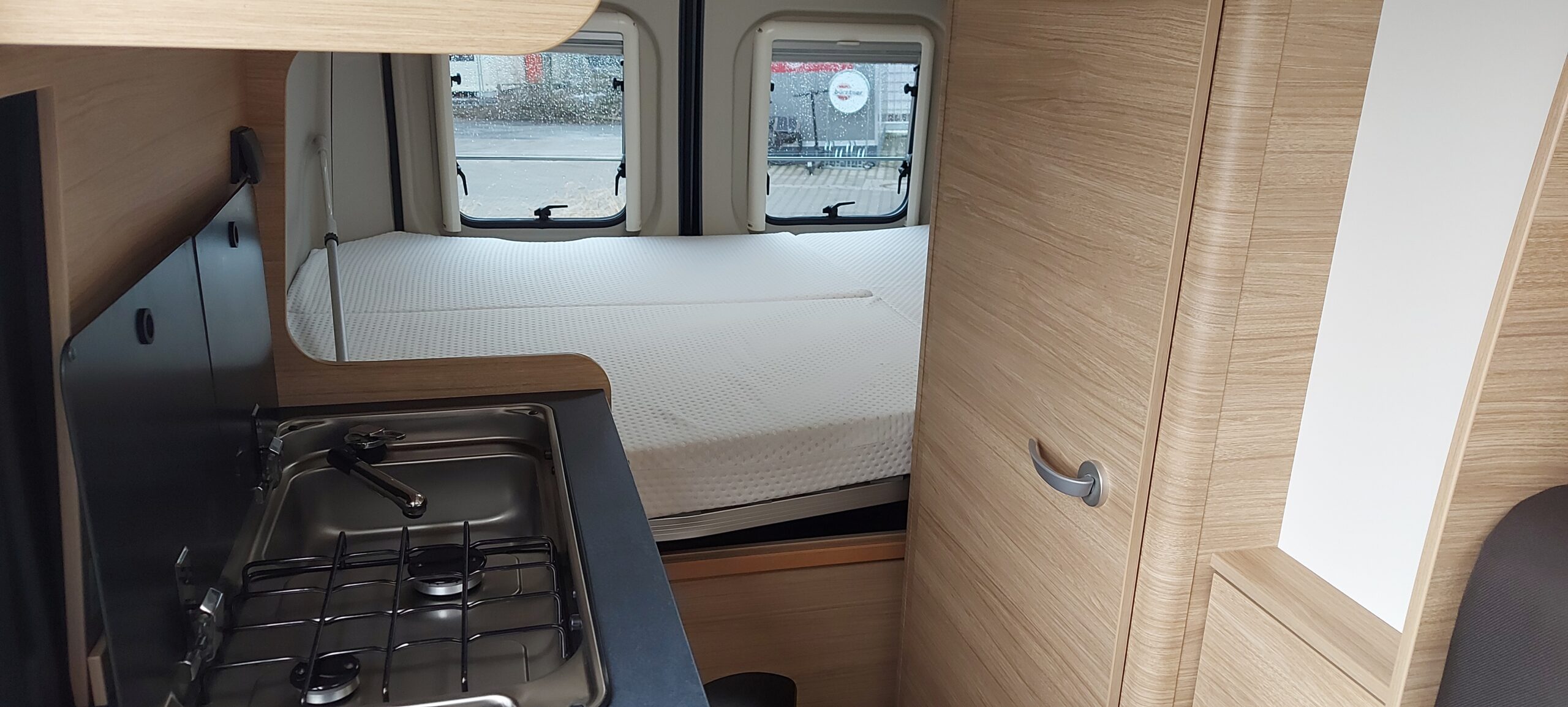 Der Klassiker unter den Kastenwagen: Ein bequemes Querbett, eine großzügige Sitzgruppe und alle Einrichtungen eines Reisemobiles, wie z.B der Nasszelle mit Toilette und Dusche, Küchenzeile mit Kochstelle und eine Heizungs-/Warmwasserkombination.